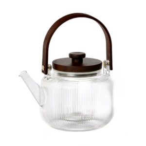 קנקן זכוכית – שקופה ידית עץ שחורה ומכסה עץ שחור/נירוסטה 1 ל’