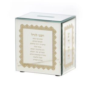 קופת צדקה – קריסטל מלבנית זהב ‘וזכנו לגדל’