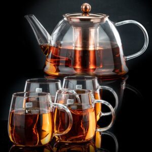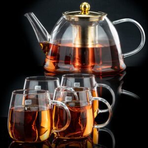 סט קנקן תה 1500 מ”ל + 4 כוסות 350 מ”ל MALAYSIA GOLD