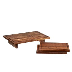 סט הגשה עץ 3 חלקים – בוצ’ר מלבן על רגליים 43 ס”מ + 2 קרשי עץ מלבן 29 ס”מ