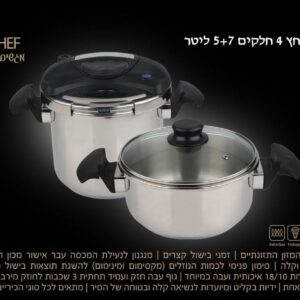 סט סירי לחץ – 4 חלקים + מכסה משולב 5 ל’ + 7 ל’ DREAM CHEF
