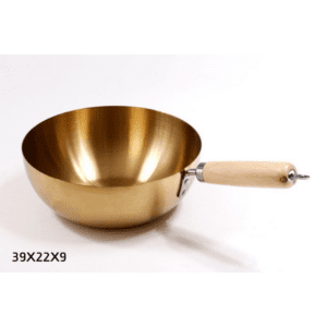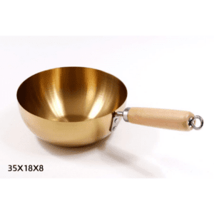 קלחת הגשה – נירוסטה זהב + ידית עץ 35X18X8 ס”מ