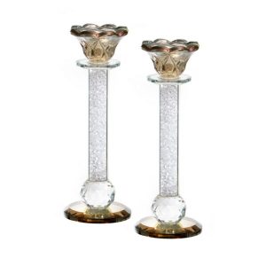 זוג פמוט – קריסטל פנינים ענבר כסף 6*20 גובה 22 ס”מ