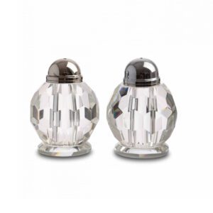 זוג מלחיות – זכוכית קריסטל עגולות ראש ניקל 8 ס”מ