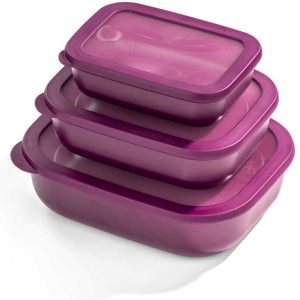 סט 3 קופסאות אחסון פלסטיק ממוחזר NESTY בורדו