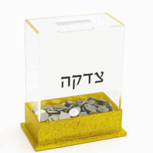 קופת צדקה – אקרילי מלבנית תחתית זהב נצנצים 13.5X7.5X15.5 ס”מ