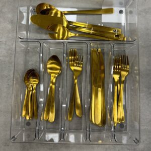 מעמד לסכו”ם – אקרילי שקוף מתכת זהב 17X17 גובה 16 ס”מ