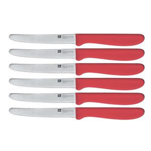 מארז 6 סכיני ירקות מעוגל\משונן אדום CLASSIC
