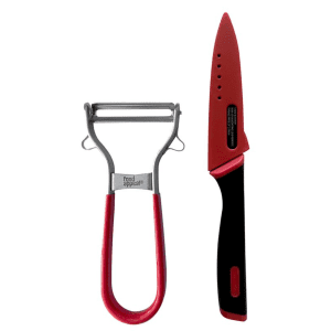 מארז חיתוך וקילוף – סכין חיתוך 10 ס”מ + קולפן דו-כיווני SHINE & SHARP אדום