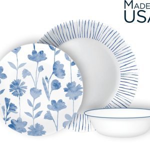 סט צלחות 18 חלקים , דגם Botanical Stripes פרחים קורנינג CORELLE