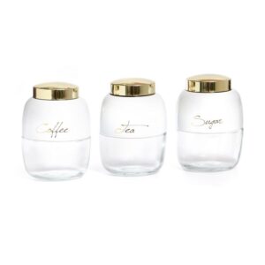 סט תה קפה סוכר – לחיצת ואקום 3 צנצנות זכוכית לבן זהב 900 מ”ל