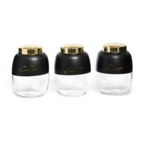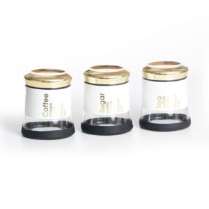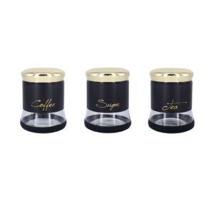 סט תה קפה סוכר – לחיצת ואקום 3 צנצנות זכוכית שחור זהב 900 מ”ל