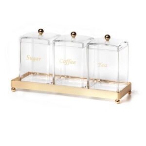 סט תה קפה סוכר – מרובע שקוף על מגש מראה זהב 30X11 גובה 28 ס”מ