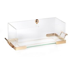 בית עוגה – מגש ופעמון אקרילי מתכת זהב 39X15 גובה 17 ס”מ