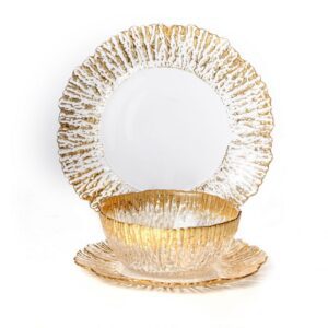 סט צלחות 18 חלקים – זכוכית אמבר זהב פס זהב שוליים מחוספסים ADI