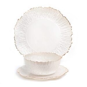 סט צלחות 18 חלקים – זכוכית לבנה פס זהב שוליים מחוספסים ADI