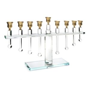 חנוכיה קריסטל – שקוף שילוב ענבר 37X20 ס”מ X5902A