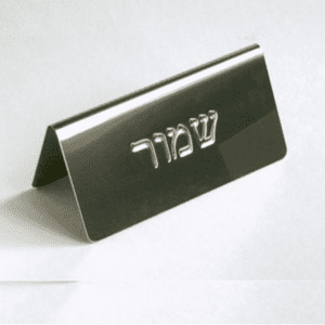 שלט שולחני נירוסטה “שמור” 12 ס”מ