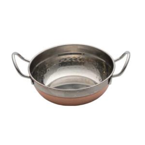 מחבת עמוק עגול 2 ידיות מרוקע ציפוי נחושת 15X5.5 ס”מ