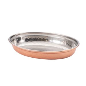 כלי הגשה אובלי מרוקע ציפוי נחושת 25.5X18 ס”מ