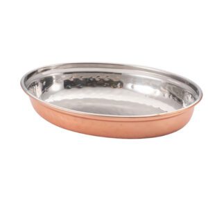 כלי הגשה אובלי מרוקע ציפוי נחושת 19X14 ס”מ