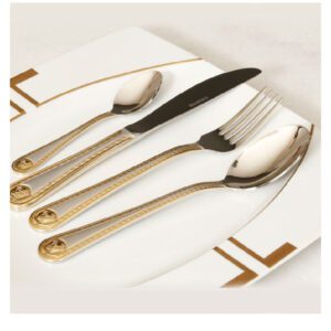 סט סכו”ם 24 חלקים – כסף נירוסטה משולב זהב דגם ורסצ’ה