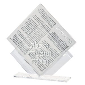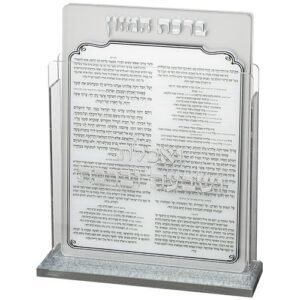 מעמד פרספקס ברכת המזון – אקרילי כסף שקוף נוסח אשכנזי 17X22 ס”מ (עם 6 ברכות)