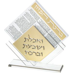 מעמד פרספקס ברכת המזון – אקרילי זהב נוסח עדות המזרח 13X17 ס”מ (עם 6 ברכות)