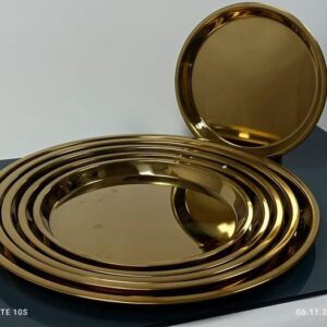 סט 3 מגשי נירוסטה זהב – 28+32+36 גובה 5.5 ס”מ
