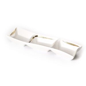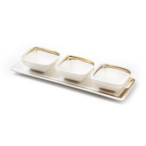 סט 3 קעריות מרובעות – פורצלן לבן זהב עם מגש 36X13.5 עומק 5.5 ס”מ