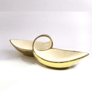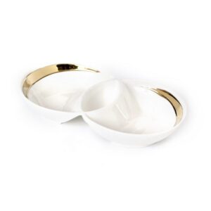 קברט 2 עיגולים – פורצלן לבן פס זהב 27.5X16.5 עומק 5 ס”מ