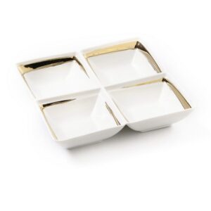 קברט מרובע – מחולק ל – 4 פורצלן לבן פס זהב 21.5X21.5 עומק 4 ס”מ