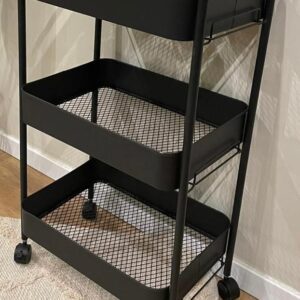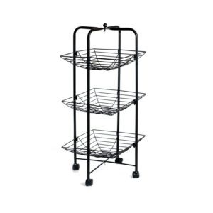מעמד ירקות עגלה 3 קומות שחור מט – סלסלה מלבנית