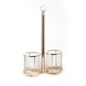 מעמד כוסות – זכוכית פסים בסיס זהב 20.5X8 גובה 34 ס”מ