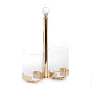 מעמד כוסות – זכוכית שקופה בסיס זהב 19X8 גובה 28 ס”מ