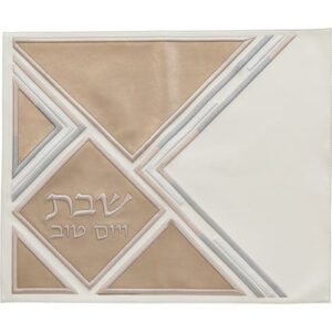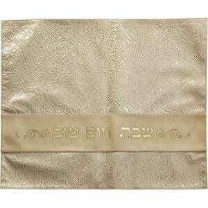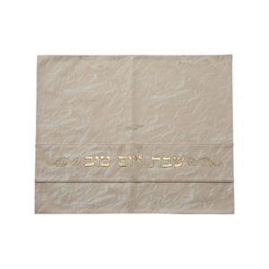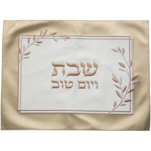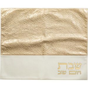 מפה לכיסוי חלה – דמוי עור שמנת וזהב ‘שבת ויום טוב’ 42×52 ס”מ