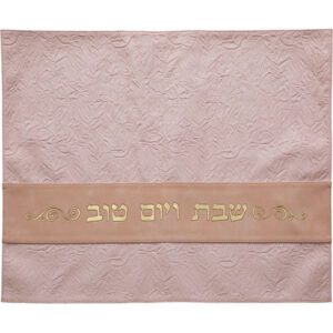 מפה לכיסוי חלה – מהודר דמוי עור ורוד כתוביות זהב ‘שבת ויום טוב’ 45X55 ס”מ