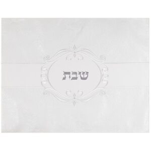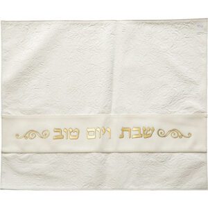 מפה לכיסוי חלה – מהודר דמוי עור לבן עם ריקמה ואותיות בולטות 42×52 ס”מ