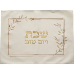 מפה לכיסוי חלה – שמנת דמוי עור פרחים ‘שבת ויום טוב’ 60X45 ס”מ