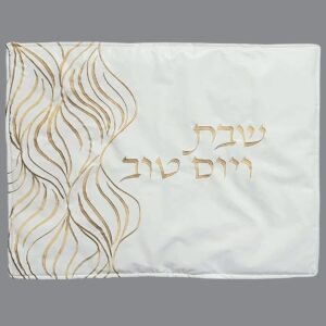 מפה לכיסוי פלטה – עור לבן קווים כיתוב זהב ‘שבת ויום טוב’ 65X80 ס”מ