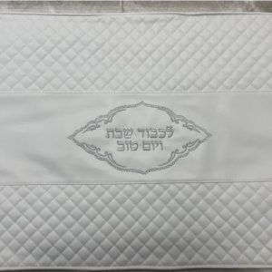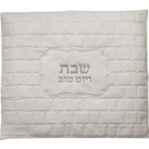 מפה לכיסוי חלה – מהודר דמוי עור לבן עם הבלטות 42×52 ס”מ