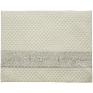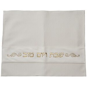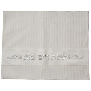 מפה לכיסוי חלה – לבן בהיר ‘לכבוד שבת ויום טוב’ 46X58 ס”מ