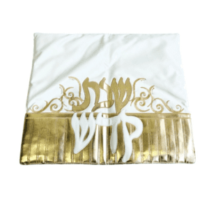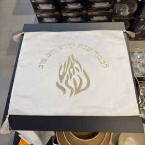 מפה לכיסוי חלה – ‘האש שלי’ לבן כיתוב זהב 46X58 ס”מ
