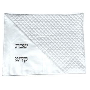 מפה לכיסוי חלה – ‘שבת קודש’ לבן כיתוב כסף 46X58 ס”מ