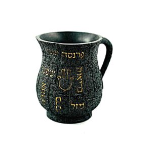 נטלה פולי – אבן אפורה עיטורים שחור ‘נטילת ידים’ 15 ס”מ