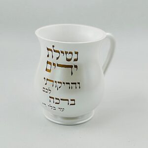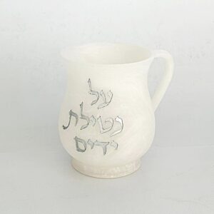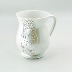 נטלה פולי – לבן קרמיקה ‘נטילת ידים’ כיתוב כסף 15 ס”מ
