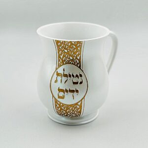 נטלה נירוסטה – אמייל לבן קישוט זהב ו”נטילת ידיים” בזהב