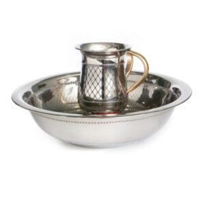 סט נטילת ידיים – נירוסטה כסף חריטת מעויינים
