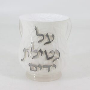 נטלה פולי – לבנה חלבית כיתוב כסף ‘על נטילת ידיים’ 15 ס”מ