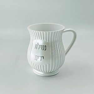 נטלה פולי – לבן קרמיקה ‘נטילת ידים’ כיתוב כסף 15 ס”מ